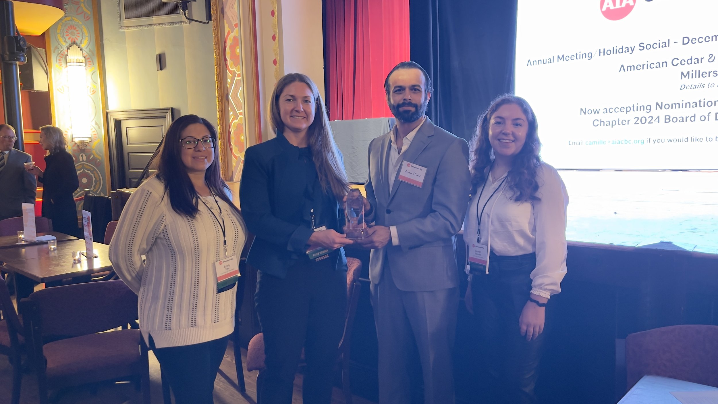Architect Anees Ubaid (Kimmel Studio Architects) and Meredith Hillyer (President, Lynbrook of Annapolis) Display the award received at the November Ceremony. They are joined by project members Emely Trejo (left) and Lauren Schnable (right), both with Lynbrook of Annapolis.