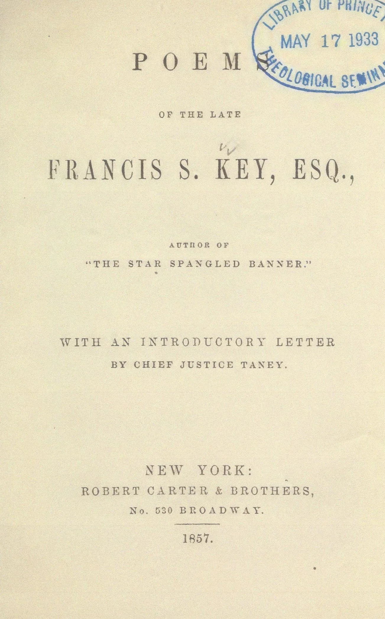 Key’s brother-in-law, U.S. Supreme Court Chief Justice Roger B. Taney, wrote the introduction. The same year Taney delivered the majority opinion in the Dred Scott Decision.