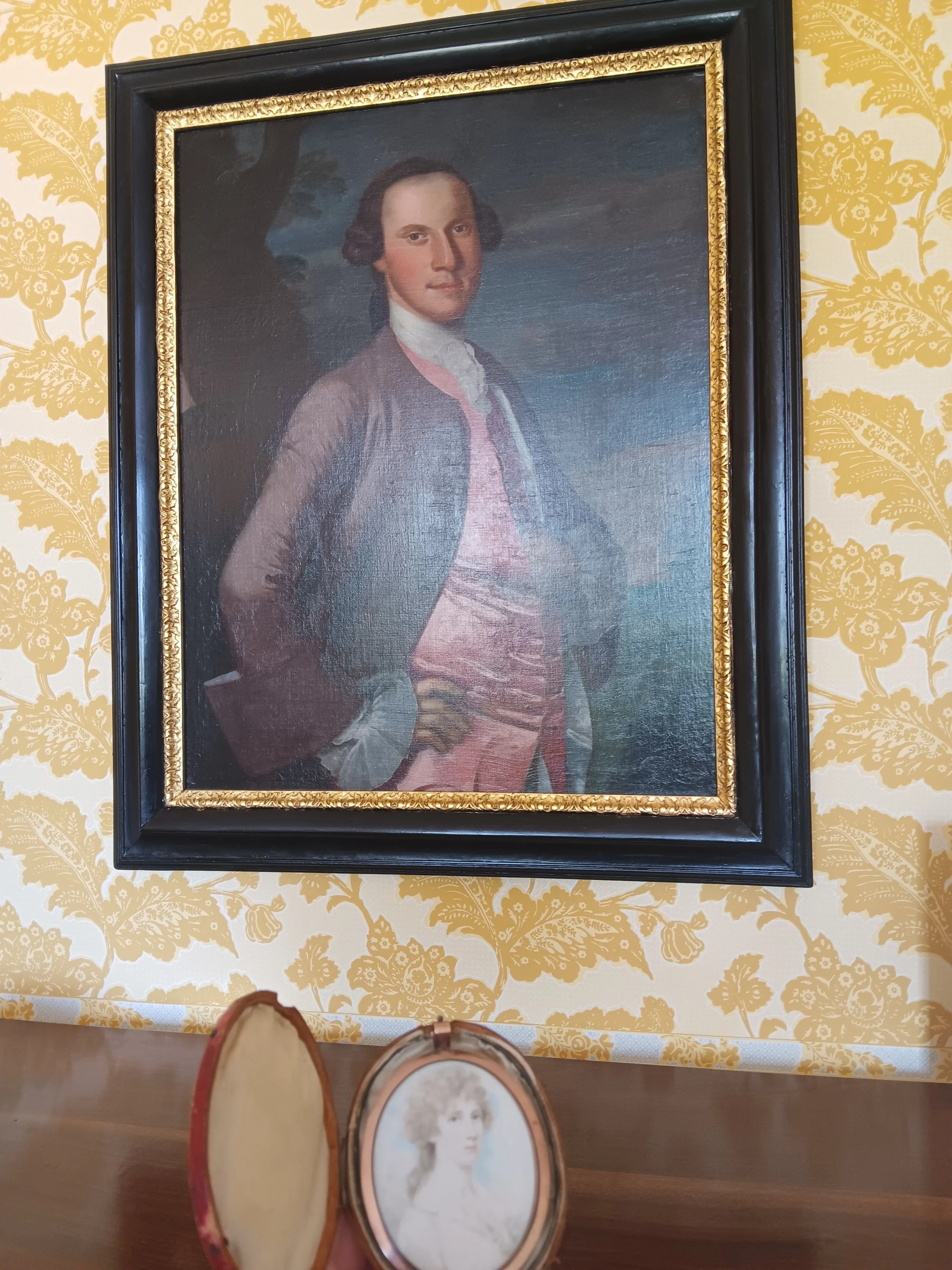 Figure 4: Henrietta Maria’s miniature by Robert Field shown in the parlor at Cloverfields next to the portrait of her father, Colonel William Hemsley, painted by John Hesselius.